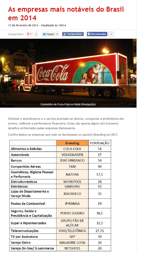 Realizada no ano passado (2013), a pesquisa “Empresa Notáveis”, produzida pelo Centro de Inteligência Padrão (CIP), analisou a performance e identificou quais as empresas com o melhor desempenho, considerando as dimensões Branding, Investimentos e Valor.
