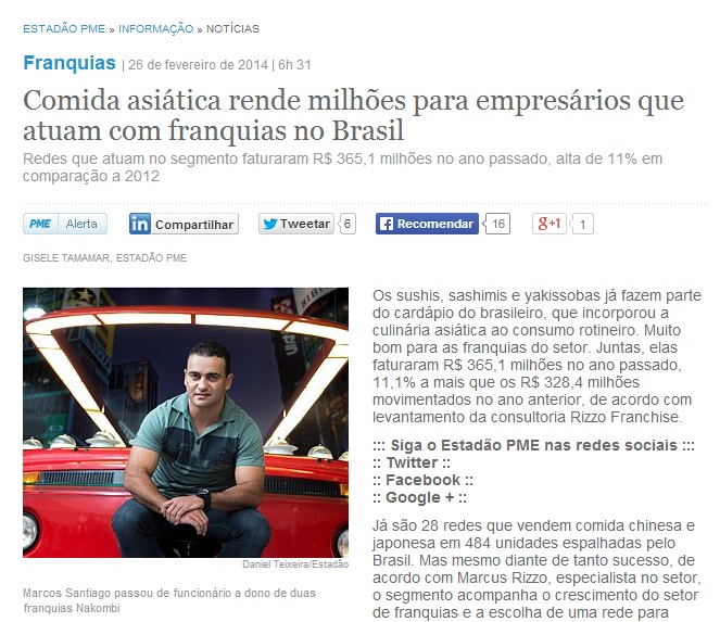 Esta mudança de hábito vem gerando ótimas oportunidades e negócios. Para traduzir em números, as redes de comida asiática faturaram R$ 365,1 milhões em 2013, aumento de 11% em relação ao ano anterior. Realmente números impressionantes!